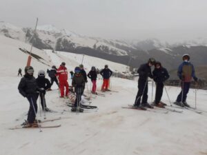 Même programme de matinée qu’hier : départ pour la station de Peyragudes avec tout le matériel de ski. Chacun suit son moniteur selon ses progrès, de la piste débutant, à la piste des experts. L’apprentissage du tire-fesses a donné lieu à quelques chutes comiques, mais tout le monde a nettement progressé !